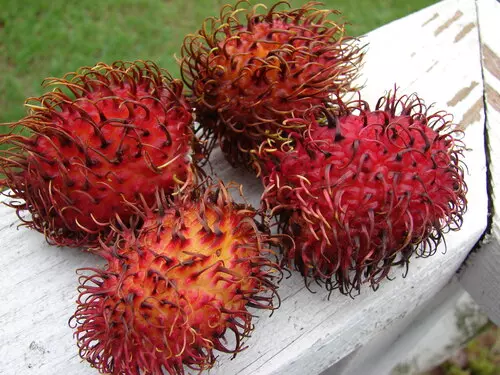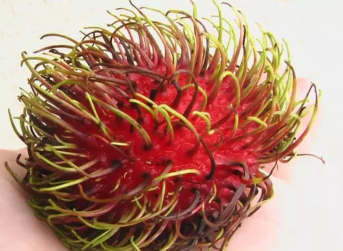 - 외형: 람부탄은 직경이 3-6cm 정도 되며, 붉은색 또는 때때로 노란색을 띠는 두꺼운 껍질을 가지고 있습니다. 껍질의 표면에는 긴 털 같은 가시가 붙어 있습니다.