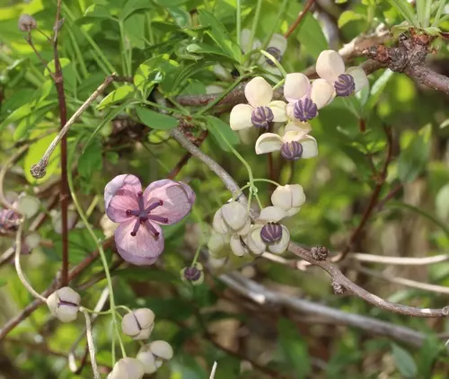 으름은 약 5미터까지 자라며, 그 모습은 다른 나무를 타고 올라가는 덩굴 형태를 띱니다. 잎은 손바닥처럼 5개의 소엽으로 구성된 겹잎이며, 이 식물의 특징적인 생김새 중 하나입니다. 으름의 꽃은 봄철에 피어나며, 향기가 있어 관상용으로도 인기가 높습니다.