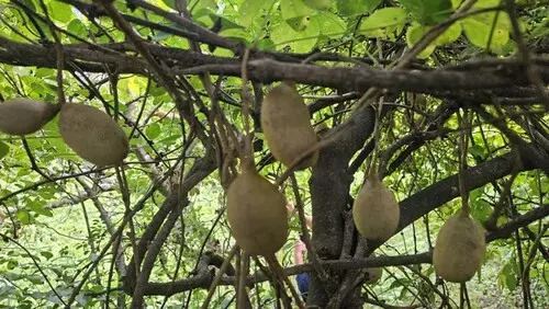 으름의 열매는 완전히 성숙하면 길이가 10cm에 달할 수 있으며, 열매 안에는 달콤한 과육과 함께 많은 검은 씨앗이 들어 있습니다. 과육은 생으로 먹거나 가공하여 잼, 주스 등으로 만들어 먹을 수 있으며, 어린 순은 나물로도 활용됩니다. 그러나 씨앗은 쓴맛이 나기 때문에 일반적으로는 제거합니다.