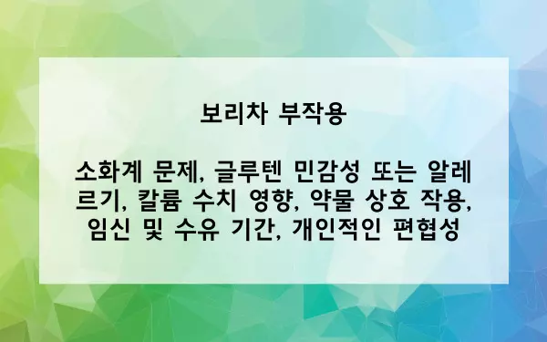 - 개인적인 편협성: 보리 또는 보리차에 대한 개인적인 편협성이나 알레르기 반응이 있는 경우에는 섭취를 피해야 합니다. 피부 발진, 호흡곤란, 가려움증 등 알레르기 반응이 나타날 수 있습니다.