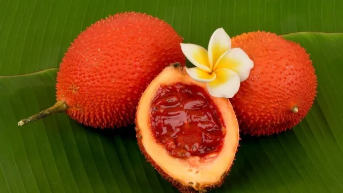 '걱(Gac fruit)'은 박과에 속하는 덩굴 식물의 열매로, 주로 베트남과 태국, 호주의 일부 지역에서 자라며, '천국에서 내려온 과일'이라는 별명을 가지고 있습니다. 이 특별한 과일은 높은 영양 가치와 다양한 건강상의 이점으로 점점 더 많은 관심을 받고 있습니다.