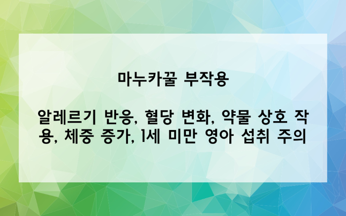 - 혈당 변화: 대량으로 섭취하는 경우, 마누카 꿀은 혈당을 일시적으로 증가시킬 수 있습니다. 당뇨병을 관리 중인 사람들은 과도한 섭취를 피해야 합니다.