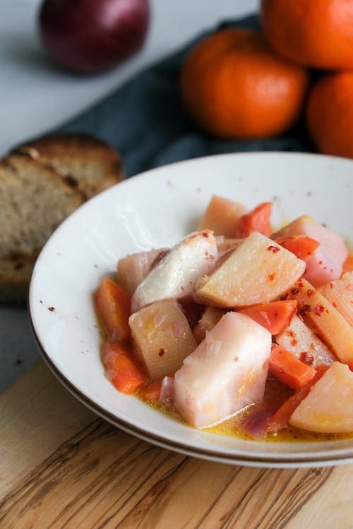 찜: 콜라비는 찜으로 만들어져 부드럽게 즐기기 좋습니다. 어느 정도 익혀진 후, 버터와 소금, 후추로 간을 해 줄 수 있습니다.
