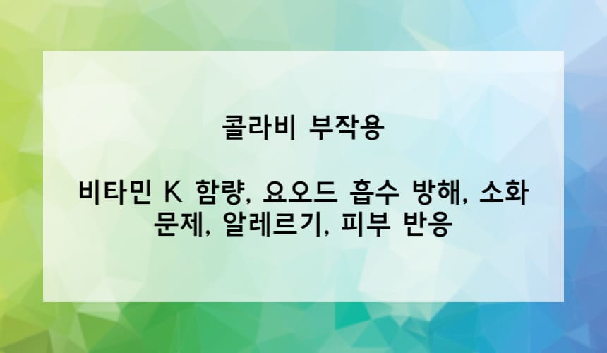 콜라비의 부작용은 대부분의 사람들에게는 드물게 발생하며, 적절한 양을 섭취하면 건강에 이롭습니다. 그러나 위에서 언급한 잠재적 부작용이나 주의 사항에 대해 알고 있어야 하며, 문제가 발생할 경우 즉시 의사와 상의해야 합니다.
