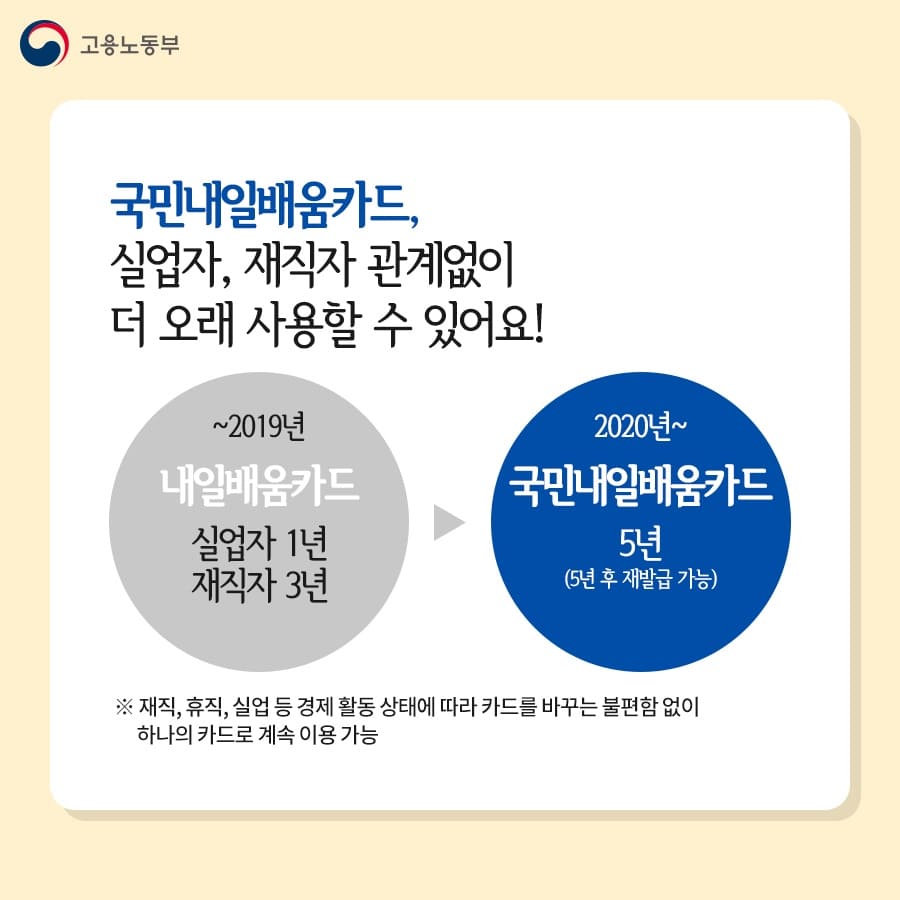 ▶ 훈련비 한도를 모두 소진했다 하더라도 국민 내일배움카드는 5년이 지나면 재발급 받을 수 있습니다.