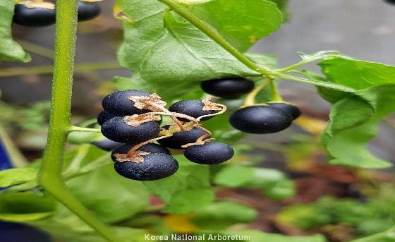 까마중: 구형, 직경 6-7mm, 흑색, 광택 없음
