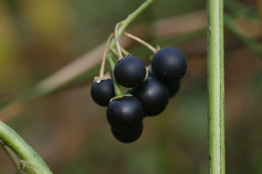 미국까마중: 공 모양, 지름 5~8mm, 광택 있음, 아래로 매달림 - 5. 줄기: