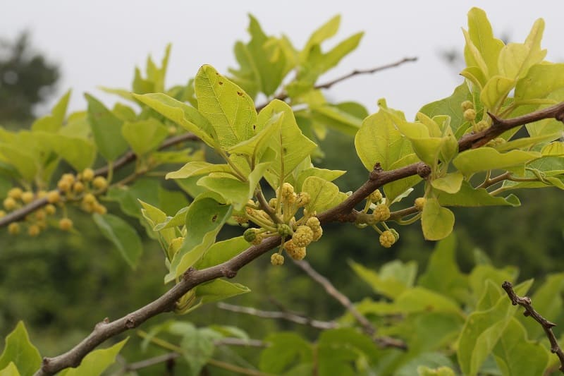 암수딴그루: 꾸지뽕나무는 암수딴그루 특성을 가지고 있어, 수꽃과 암꽃이 다르게 피게 됩니다.