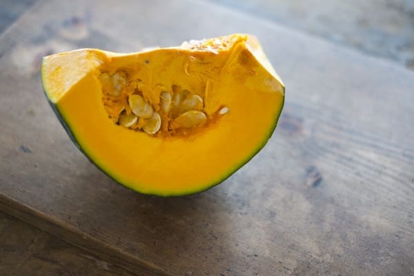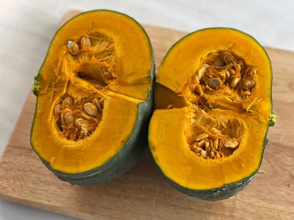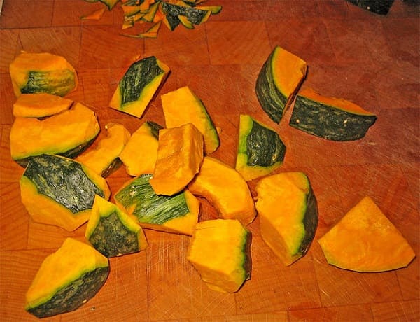 단호박은 껍질을 제거하고 씨를 빼 낸 후 작은 크기로 썰어줍니다.
