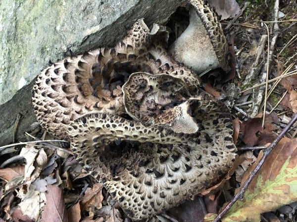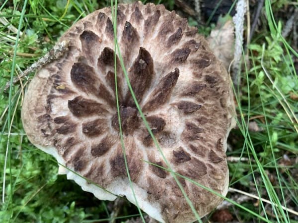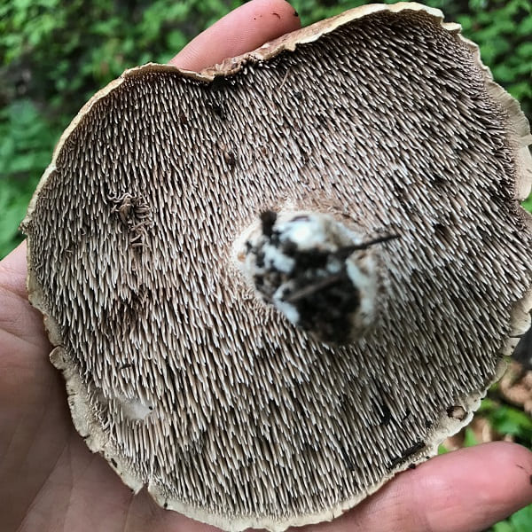 주름살: 전형적인 버섯의 주름살 대신, 능이버섯의 하단은 연한 색의 ‘이빨’이라고 불리는 부드러운 가시들로 덮여 있습니다. 이 가시들은 버섯의 나이가 들면서 색이 어두워집니다.