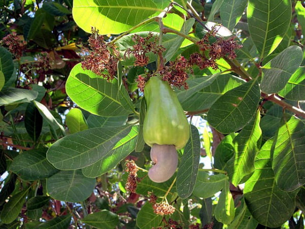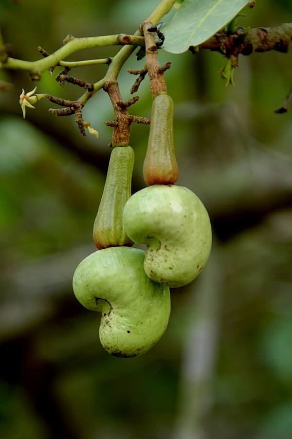 캐슈나무는 옻나무과에 속하는데, 이 나무의 과일 부분은 실제로 캐슈 애플이라고 불리는 헛열매(pseudofruit)입니다. 캐슈넛은 이 캐슈 애플의 아래에 달린 진짜 씨앗으로, 보통의 과일과 달리 씨앗이 과일 바깥에 위치해 있습니다. 원주민들은 캐슈 애플을 식용으로 하고 캐슈넛을 약용으로 사용하였습니다.